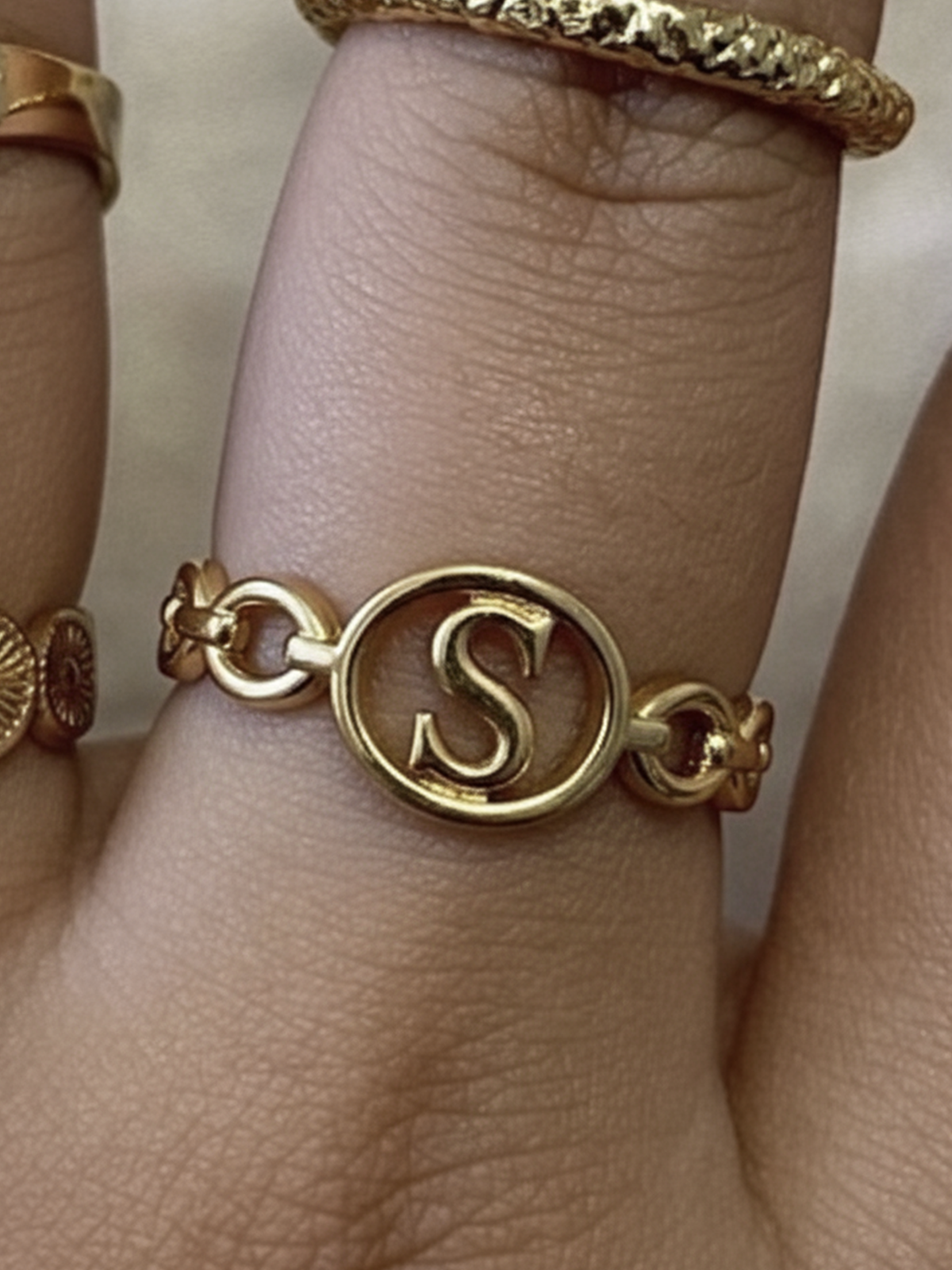 Our initial ring in gold or silver stainless steel is a subtle and refined tribute to your favorite letter, whether it’s your own name, that of a loved one, or a meaningful symbol. Its openwork design in the shape of an intertwined circle highlights each initial with a modern and timeless style.